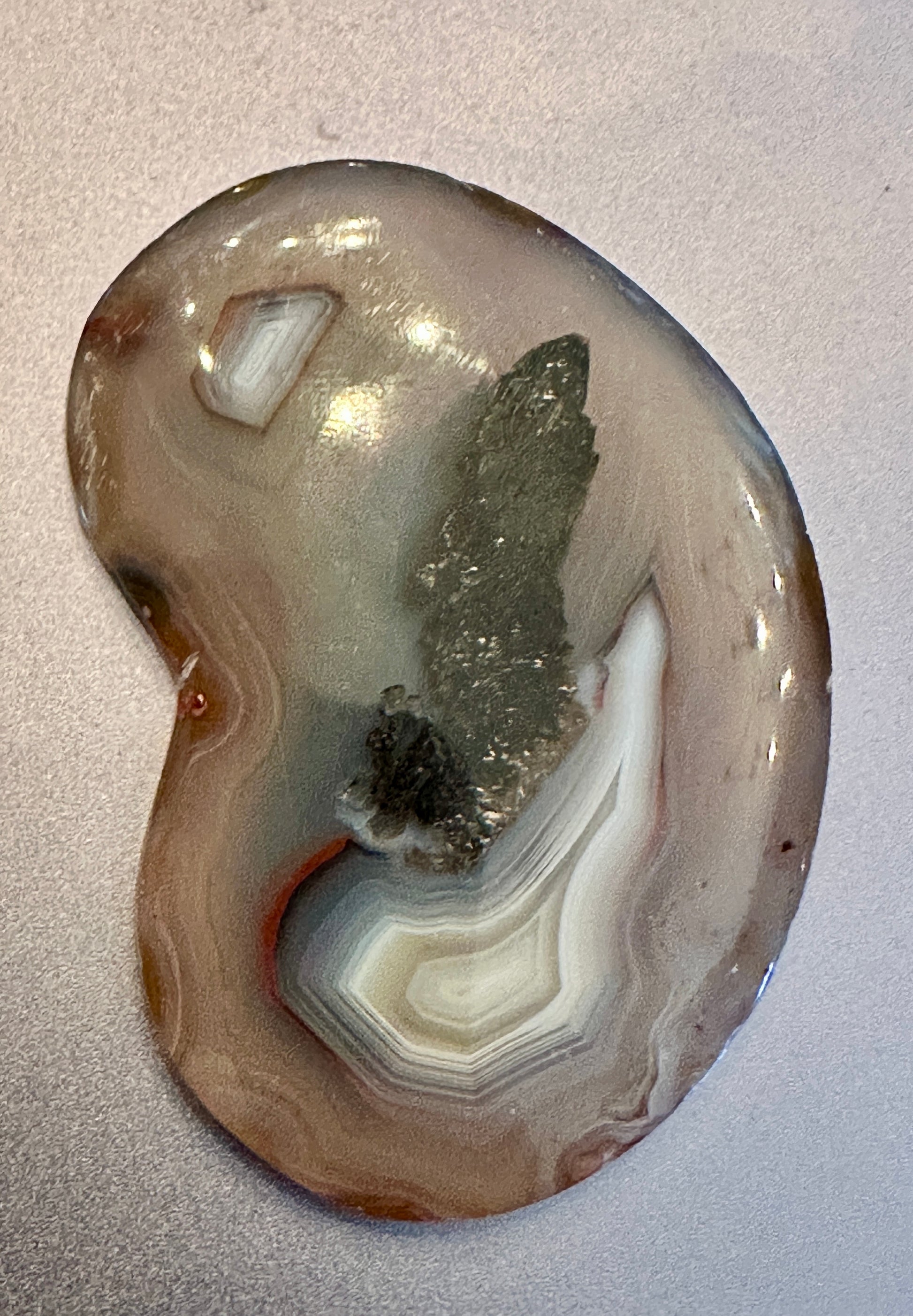 This freeform cab just screams to be made into a beautiful pendant. The plume in the middle is probably manganese oxide.